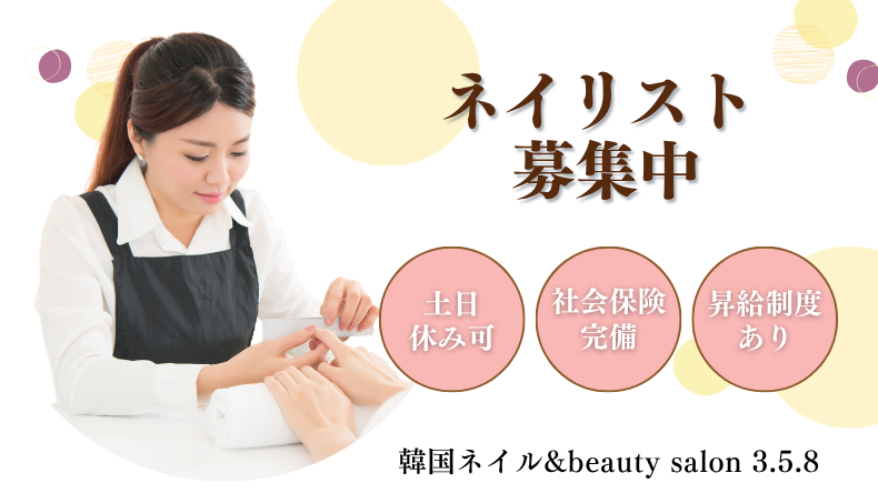 【正社員】韓国ネイル&beauty salon 3.5.8 ネイリスト募集!