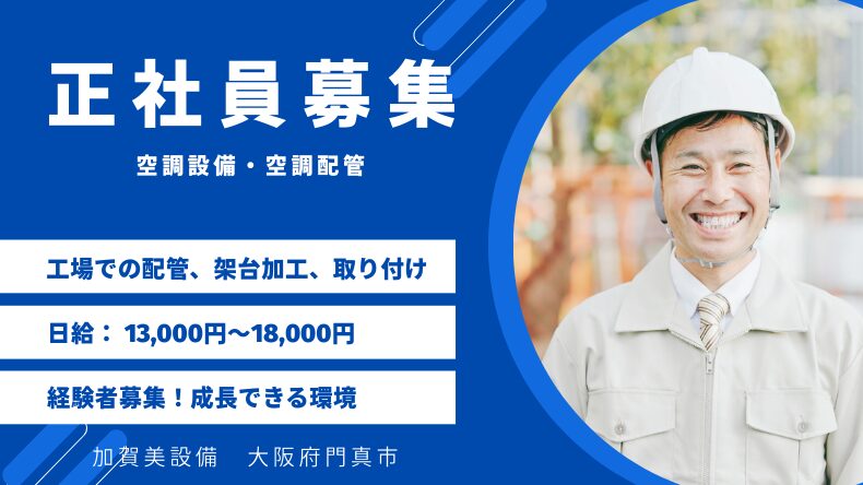 加賀美設備 空調設備・空調配管工募集 門真市 未経験歓迎