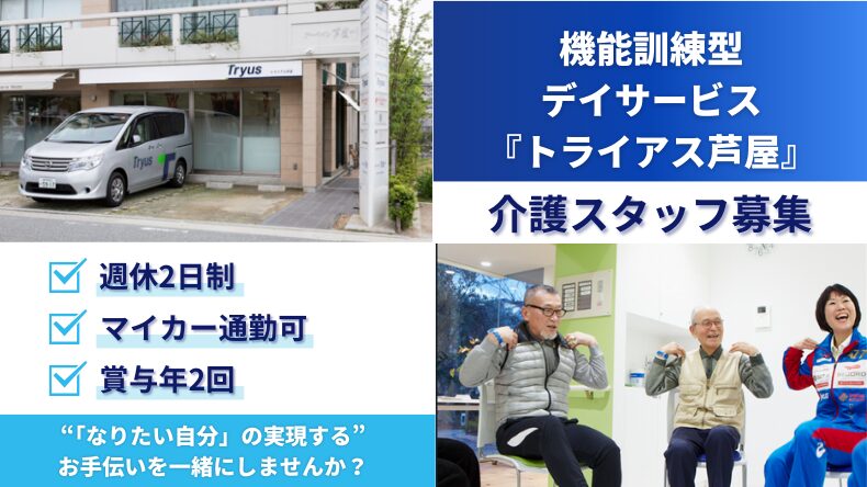 芦屋市 アシックス機能訓練特化型デイサービス『トライアス芦屋』 介護スタッフ募集