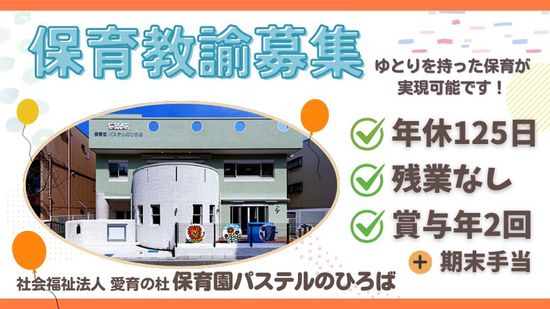 【尼崎市】保育園 パステルのひろば 保育教諭募集
