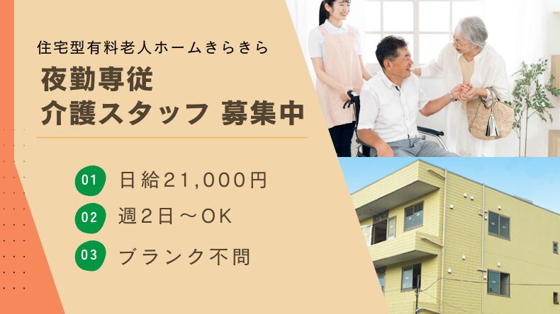 八尾市 【夜勤専従】 住宅型有料老人ホームきらきら 介護スタッフ募集