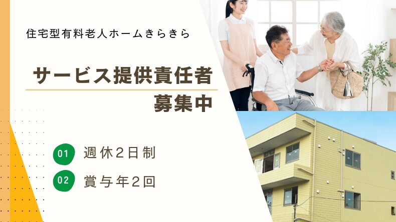 八尾市 住宅型有料老人ホームきらきら サービス提供責任者募集