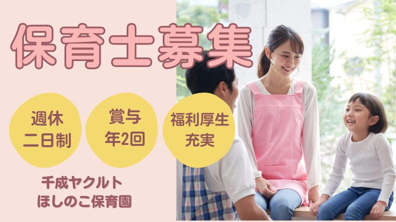 【交野市】 千成ヤクルトほしのこ保育園 保育士募集